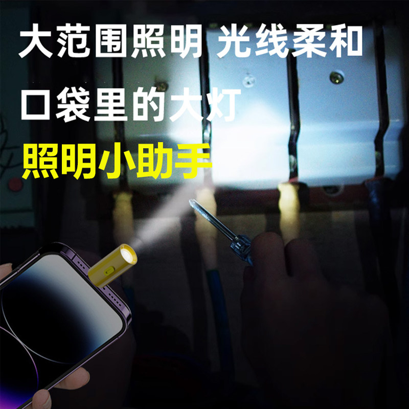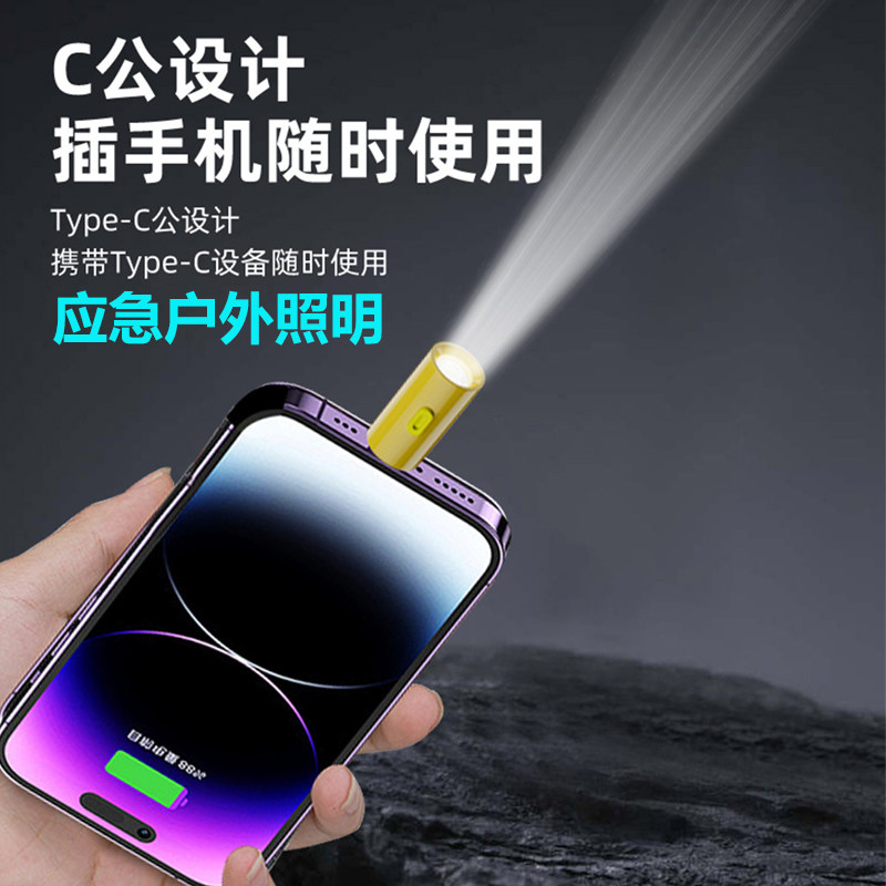 USB应急照明小灯具户外旅行夜晚野外室内随身TypeC小手电筒手机充电宝外接照明灯Mini便携式带挂绳免充电强光