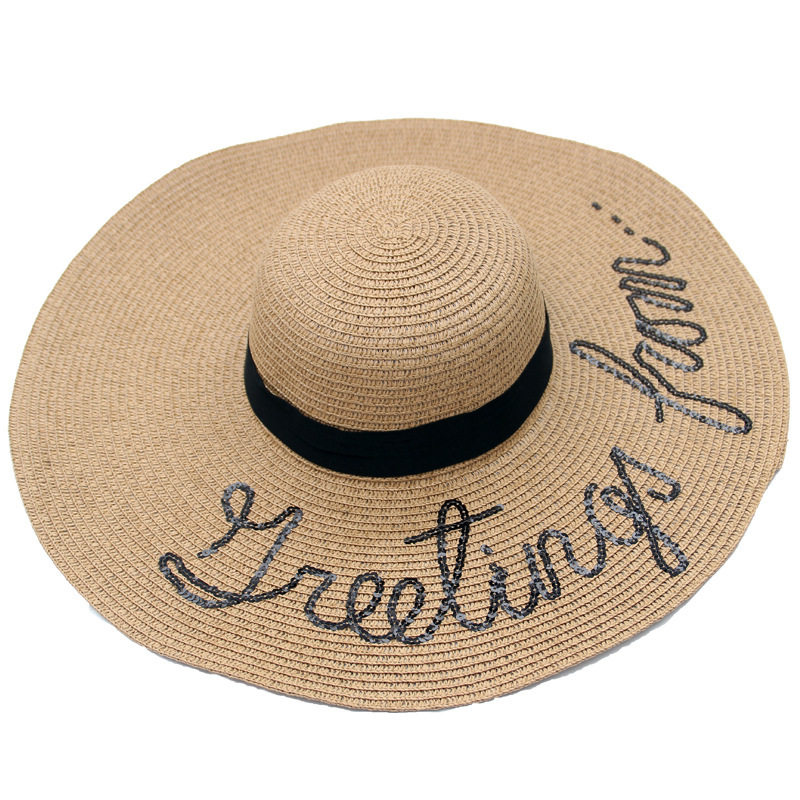 夏季大帽檐遮阳防晒帽海边度假字母亮片折叠草帽女百搭草编礼帽女