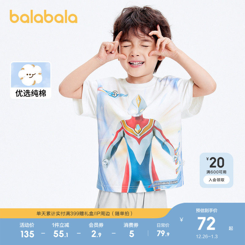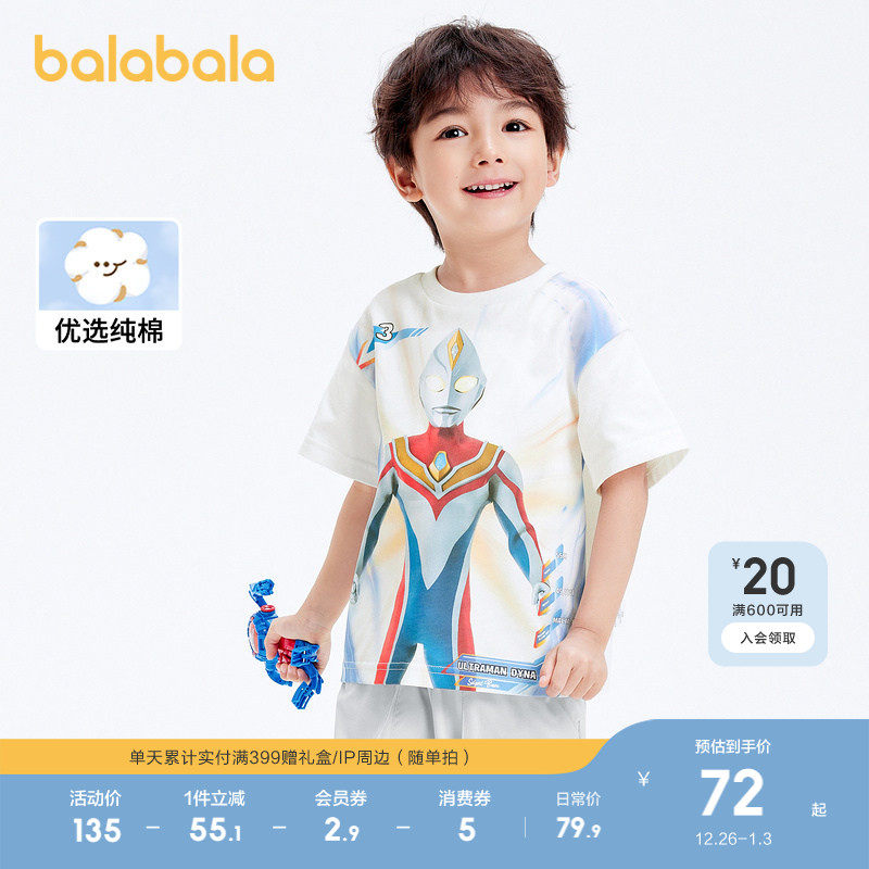 【奥特曼IP】巴拉巴拉童装儿童短袖男童2025春夏装纯棉休闲上衣潮