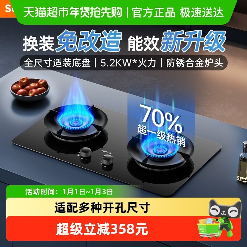SUPOR/苏泊尔MB17S燃气灶煤气灶双灶家用嵌入台式炉灶天然液化气