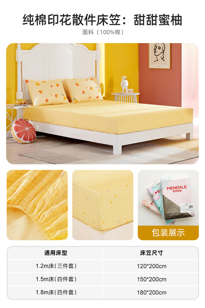 梦洁家纺纯棉印花床笠床品散件全棉学生宿舍租房专用被垫床上用品