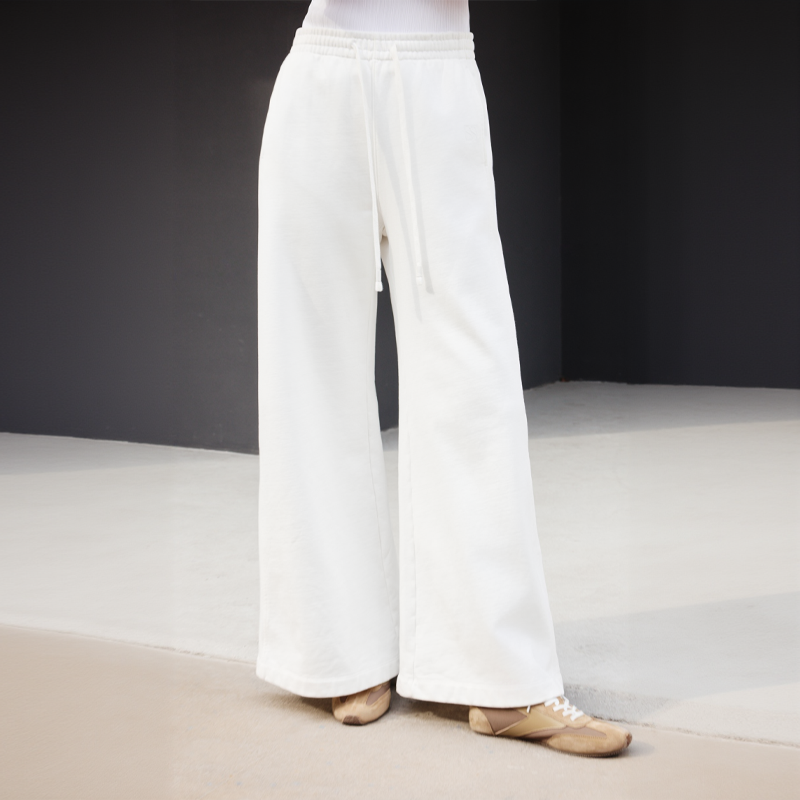 SIINSIIN弯刀卫裤2025新款女冬加绒垂感长裤运动休闲加厚裤子白色