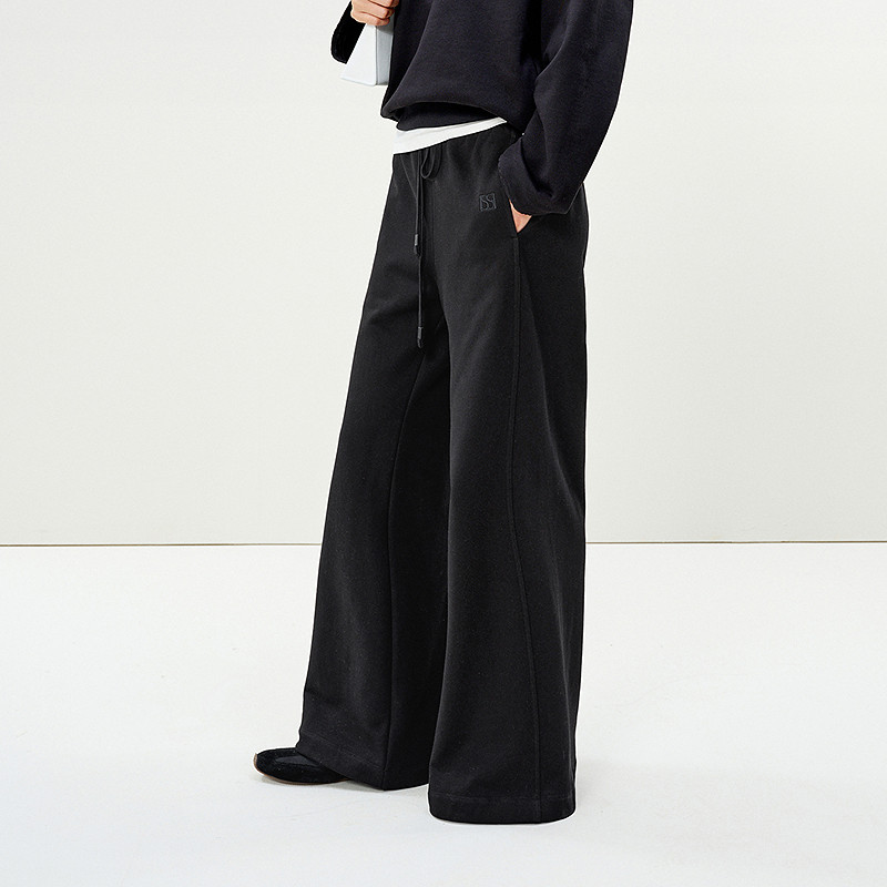 唐狮DESSO秋冬新款糯米裤高腰垂感宽松加绒直筒阔腿裤5