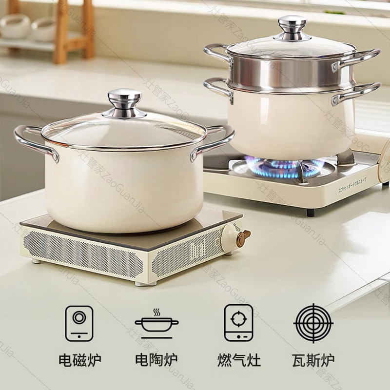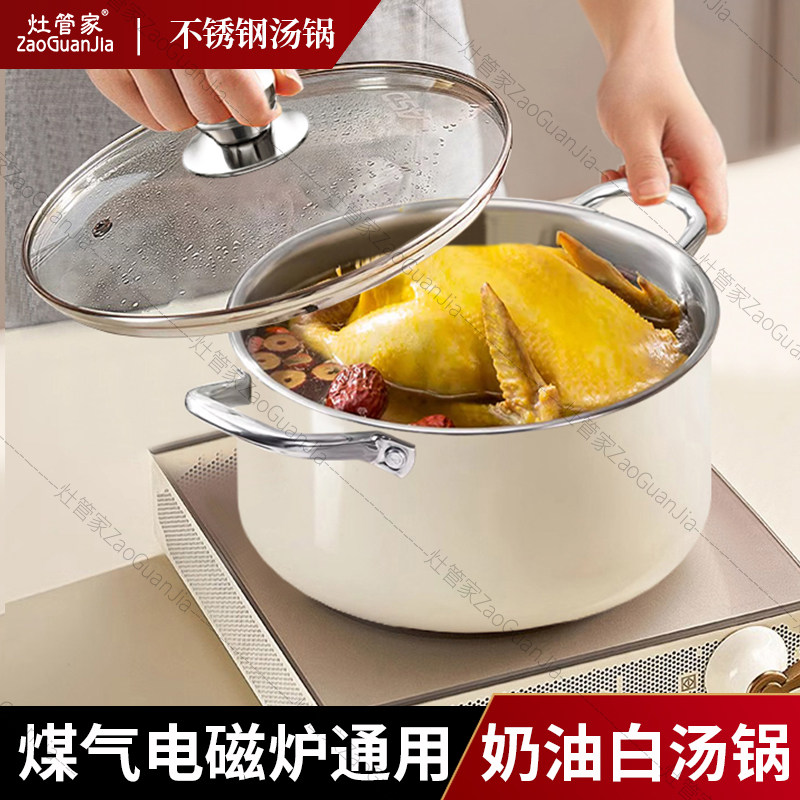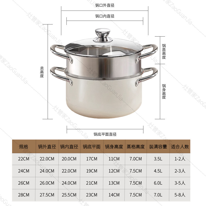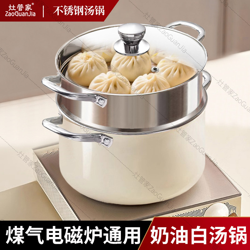 灶管家汤锅家用蒸煮炖加厚不锈钢高颜值双耳带蒸笼2025新款燃气