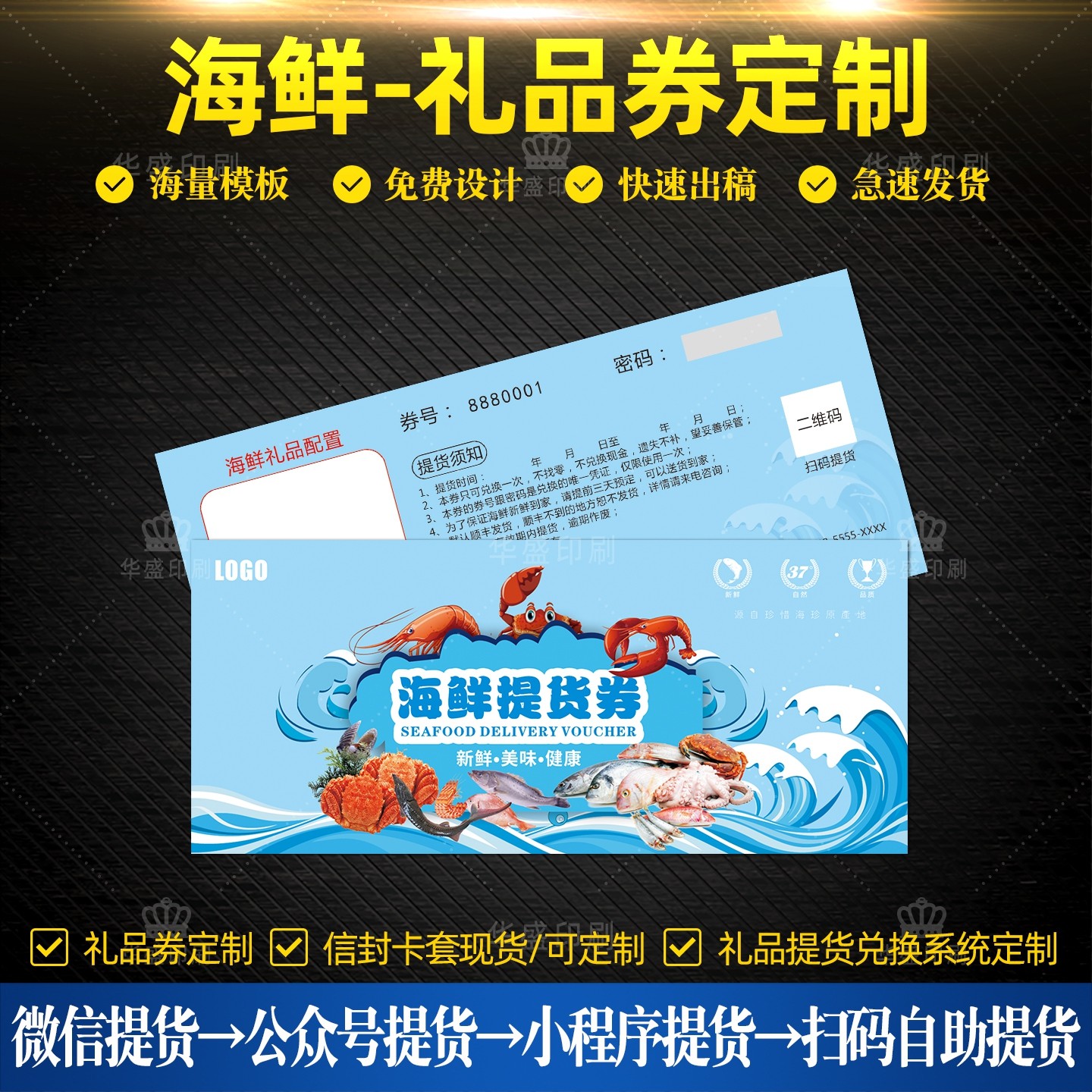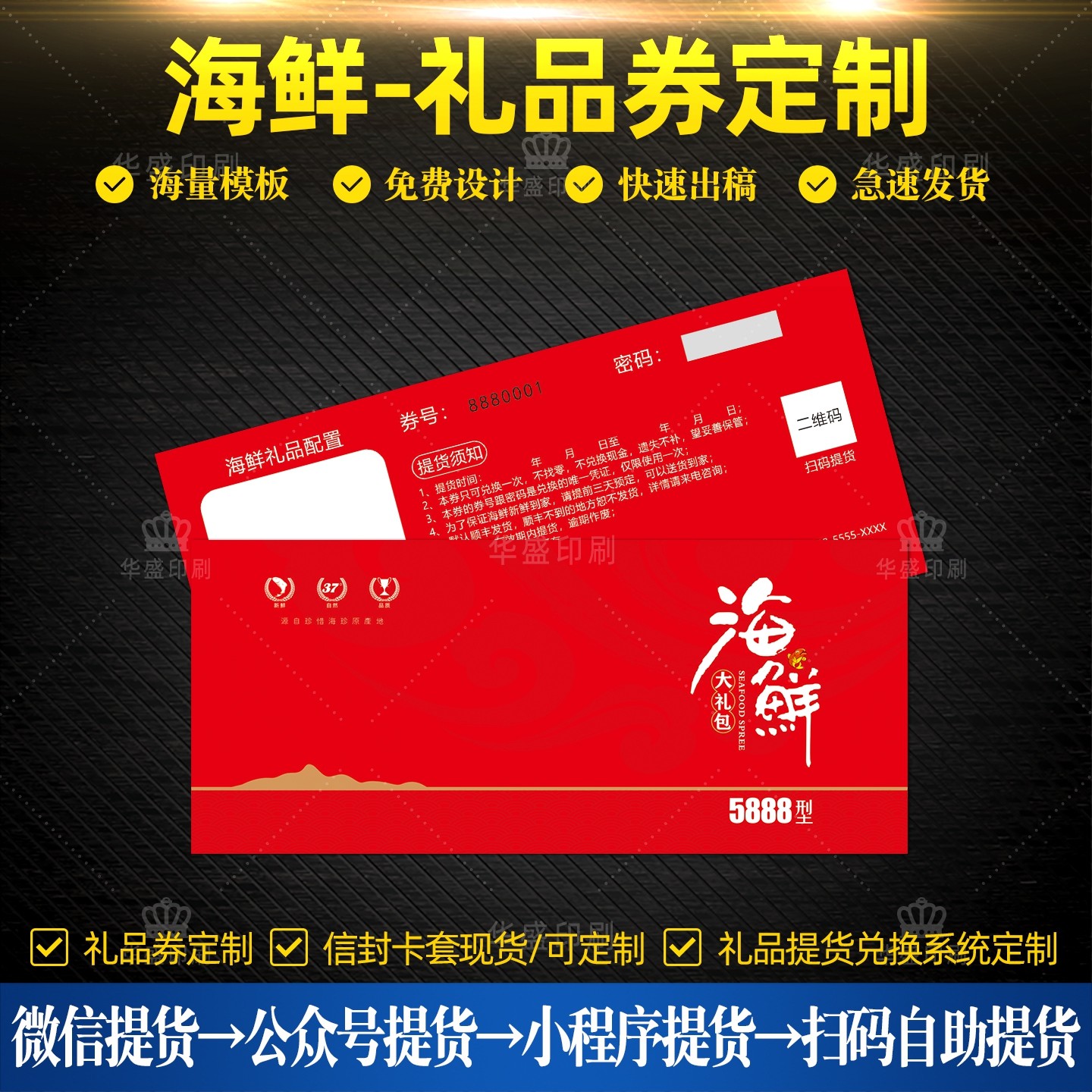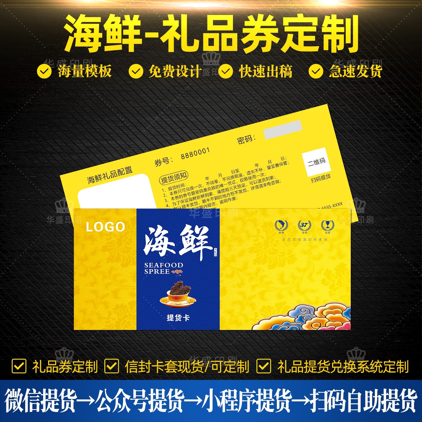 海鲜礼品券定制 海参提货券定做 密码兑换卷制作刮刮卡信封套订做