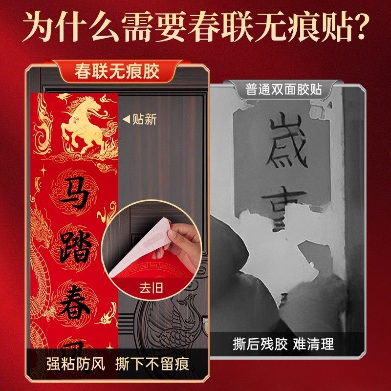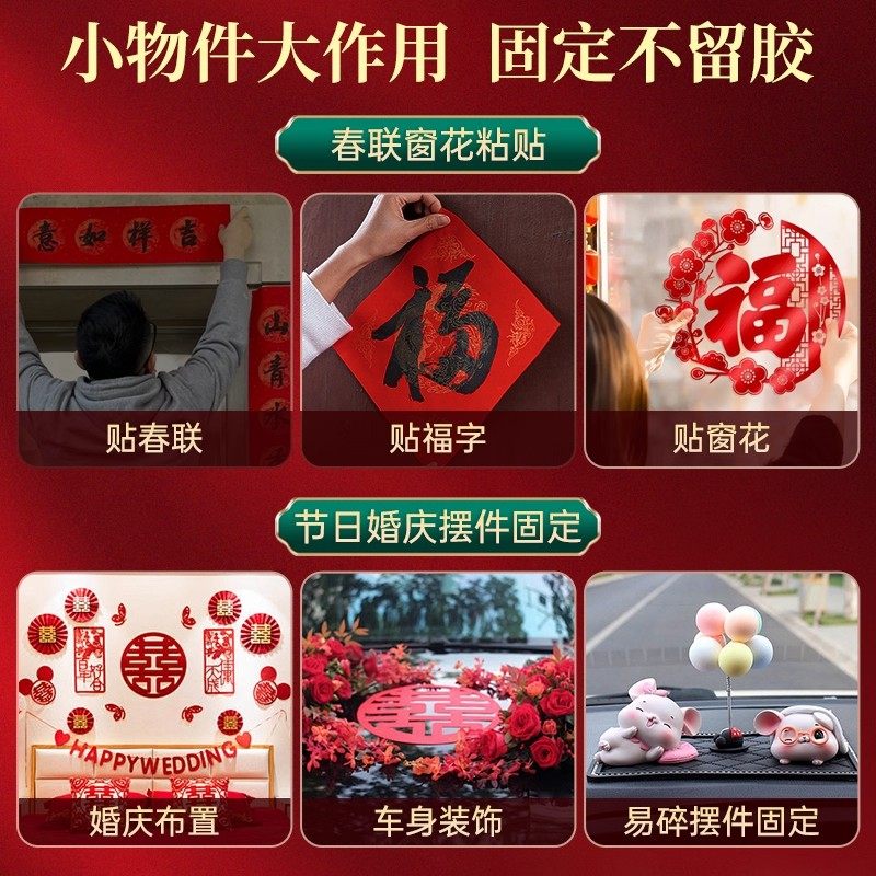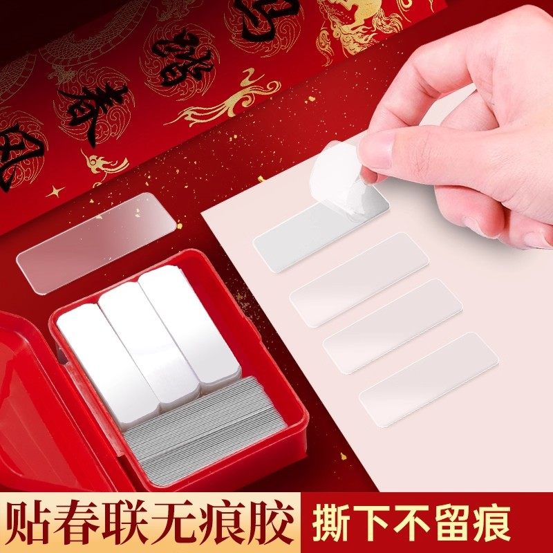 对联专用双面胶贴家用胶水自粘无痕贴春联双面胶粘喜字新年婚庆婚车纳米胶带双面贴通用透明盒装固定胶无痕胶