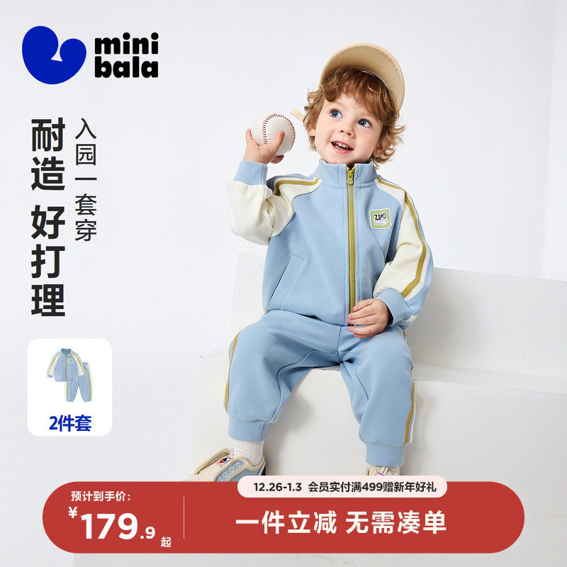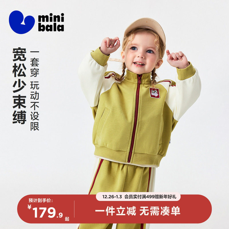 迷你巴拉巴拉男女童学院套装宝宝儿童透气耐造外套长裤2026春新品