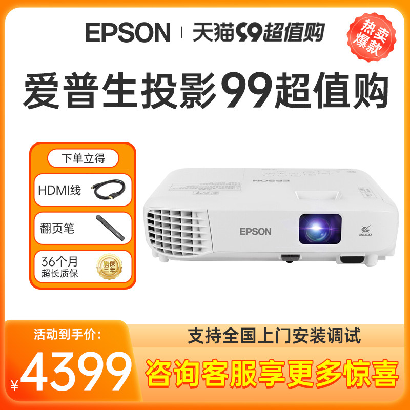 爱普生投影仪CB-W53家用教学教育培训会议便携高清宽屏4000流明商务白天用直投高亮办公室投影机