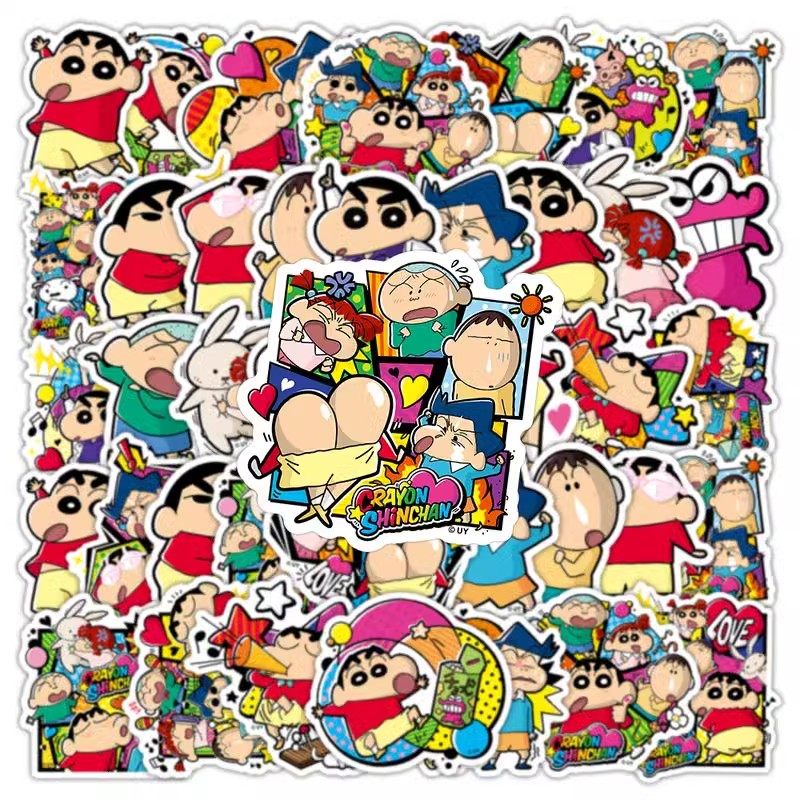 300张蜡笔小新贴纸合集卡通可爱手机手账行李箱装饰女孩儿童贴画