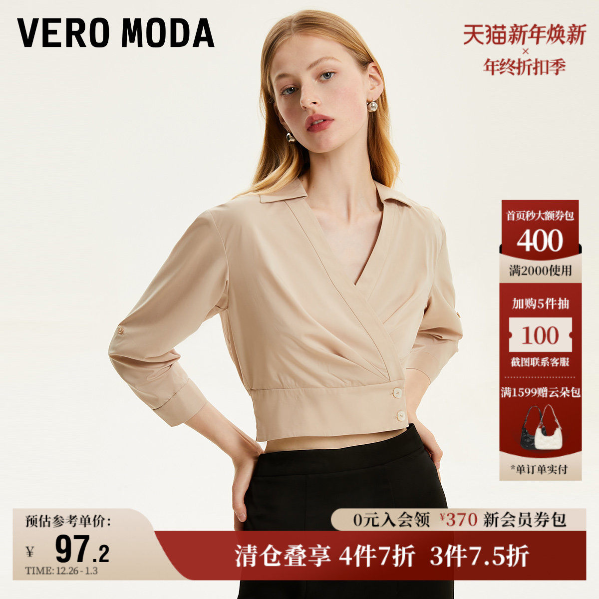 Vero Moda奥莱上衣女秋冬清仓简约优雅V领七分袖气质短款收腰流行
