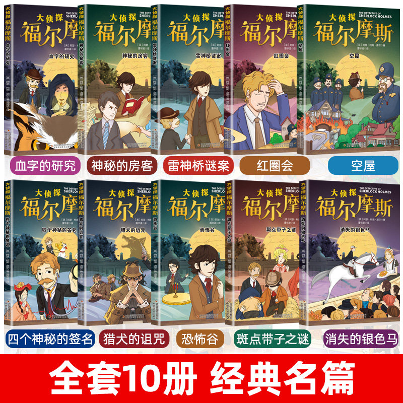 正版全套10册名侦探福尔摩斯探案集全集注音版漫画小学生版大侦探类书籍少儿童一二三到六年级课外必读破案推理故事小说文学阅读