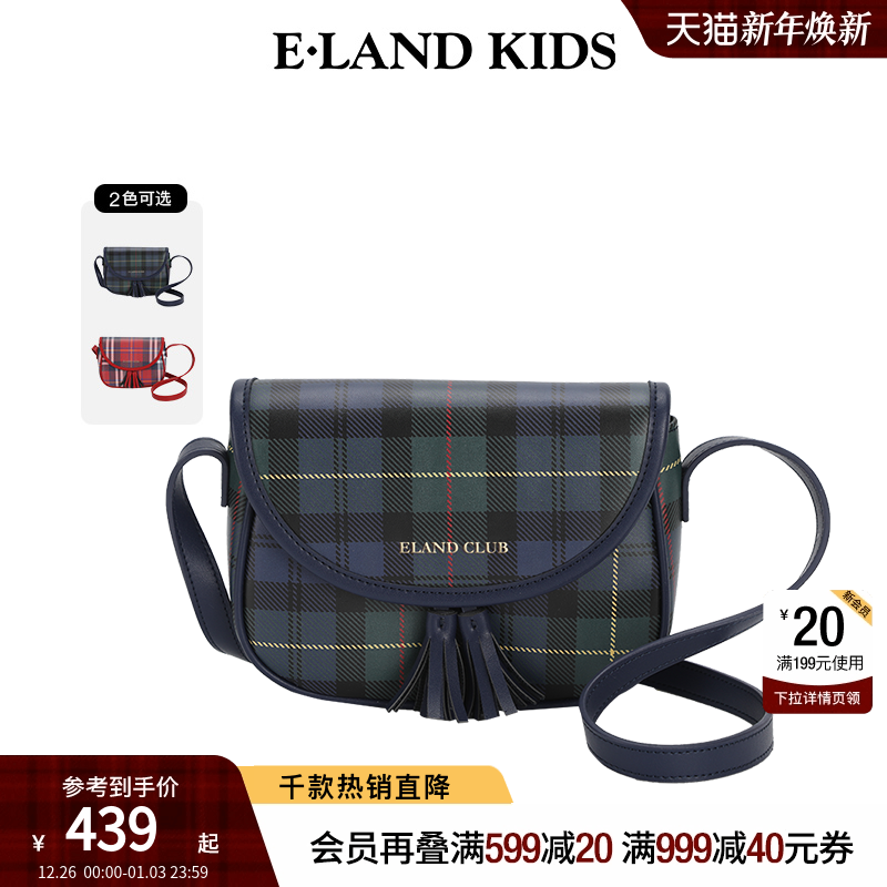 eland kids衣恋童装女童春秋女童休闲复古格纹包流苏单肩包斜挎包