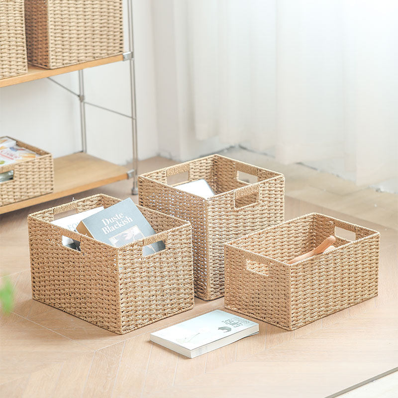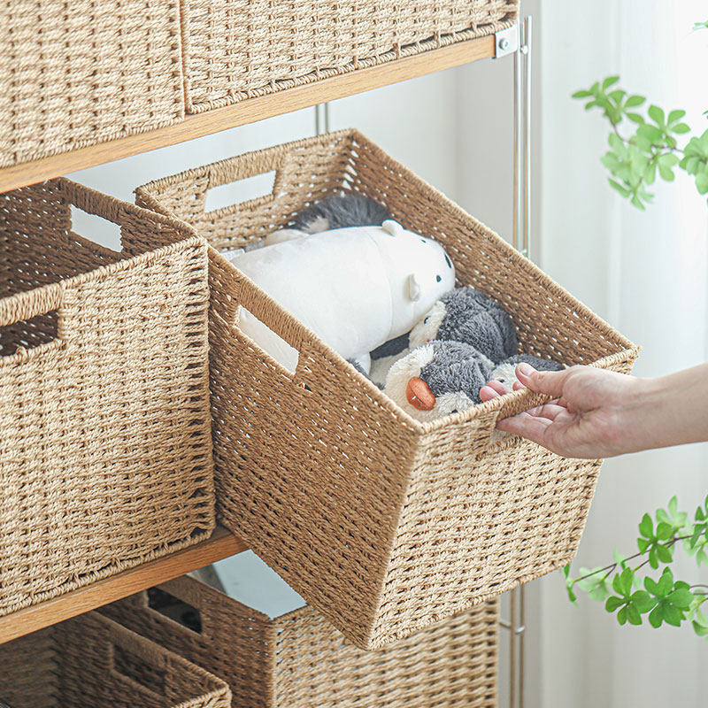 日式简约收纳筐仿藤编草编衣物零食玩具收纳箱收纳盒储物箱收纳篮