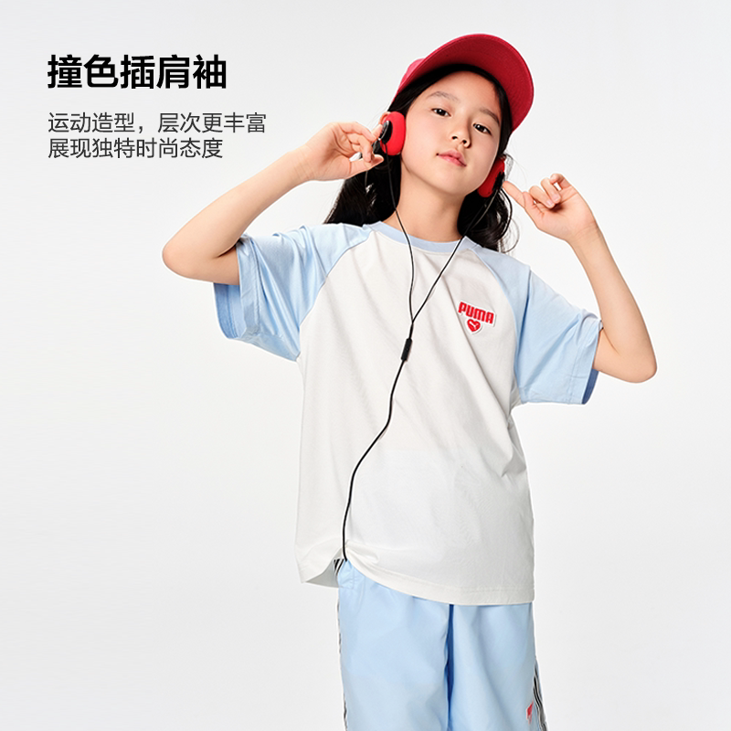 【渠道】PUMA彪马童装儿童T恤舒适吸湿排汗插肩撞色