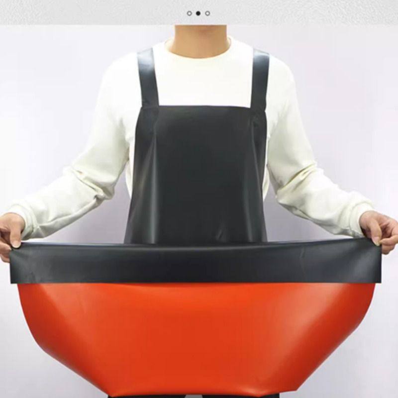 加厚背带防水围裙厨房家用做饭防油围腰耐酸碱加大水产柔软皮围兜