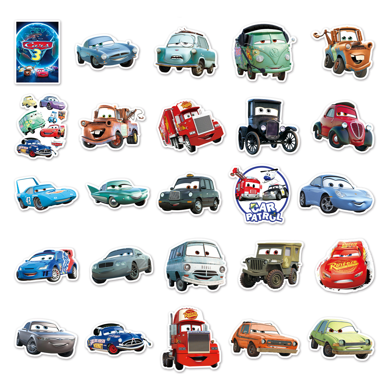 100张汽车总动员贴纸手提箱笔记本滑板车平板头盔装饰卡通动画可爱Q版闪电麦昆角色涂鸦个性创意防水DIY贴画