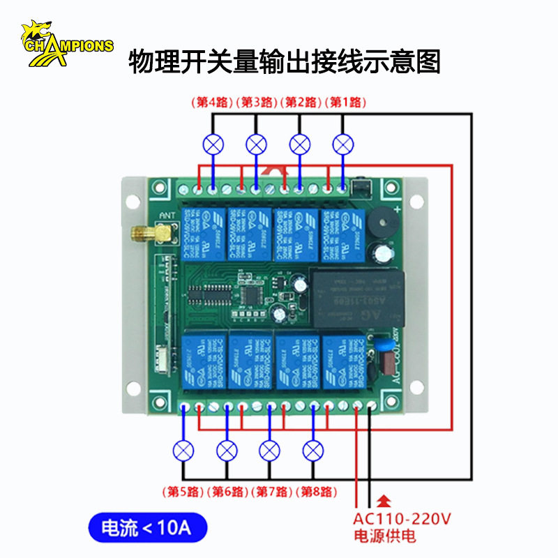 大功率控制220V水泵抽水机电机无线遥控开关八路电机正反转