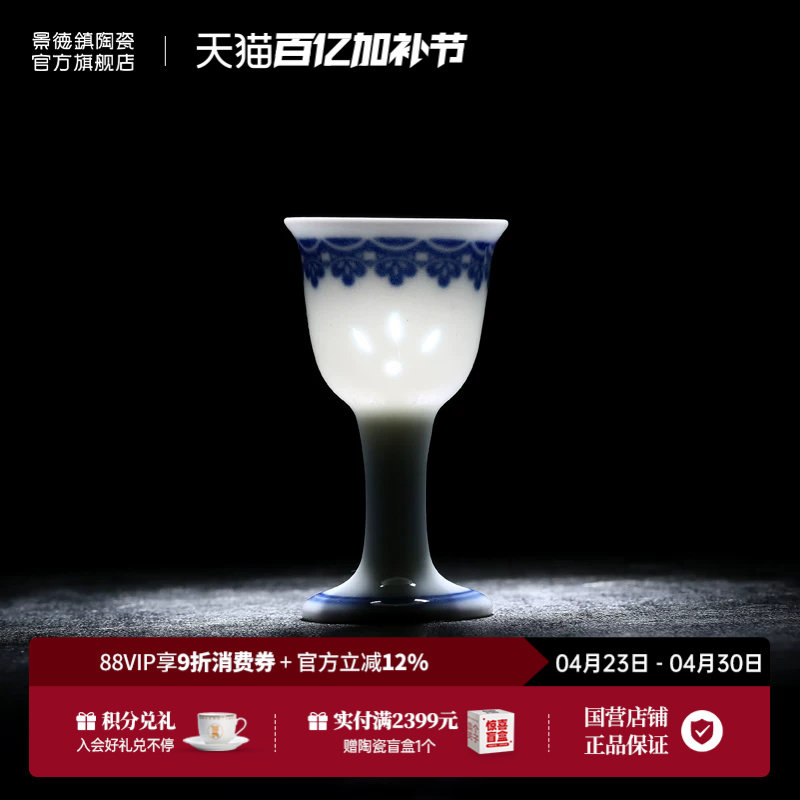 景德镇官方陶瓷釉下青花家用玲珑小清酒杯单杯一口杯小号酒具套装