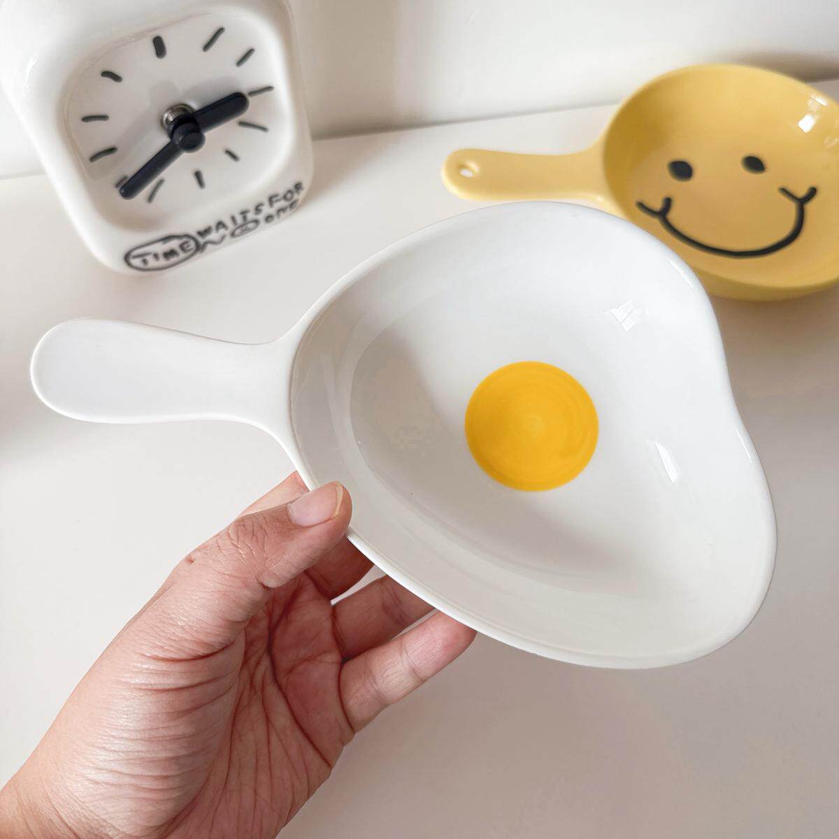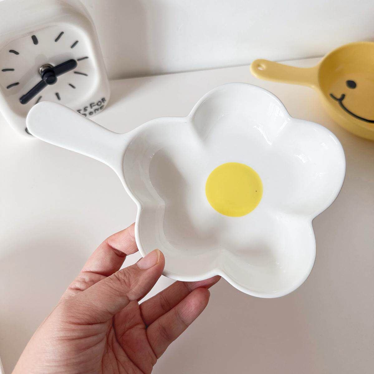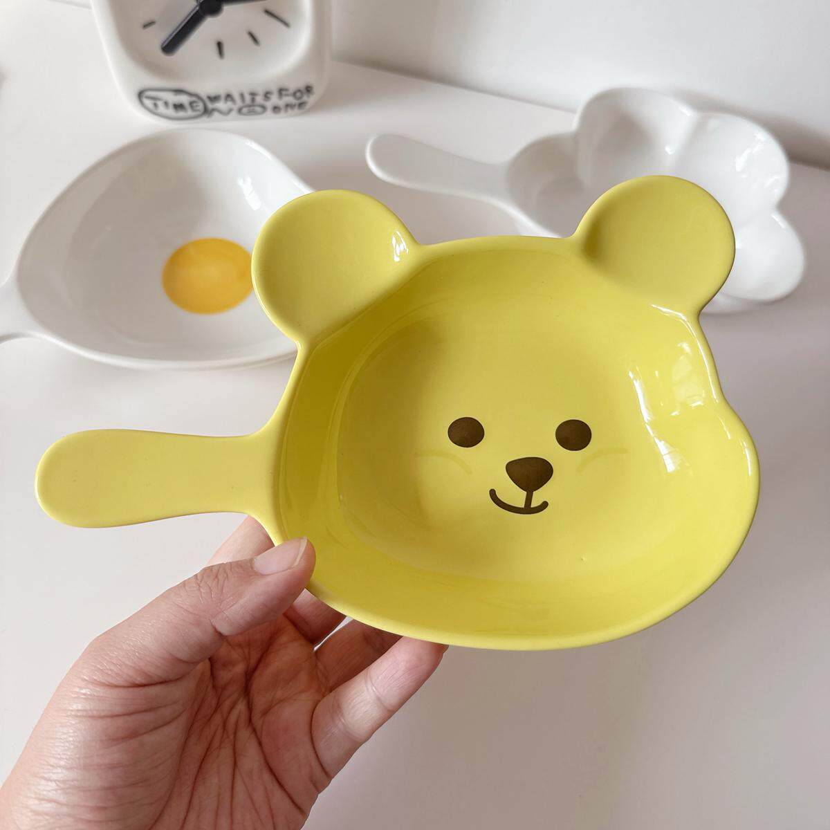 韩国ins小熊花朵陶瓷带把手柄盘子火锅嗦粉碟家用餐盘碗焗饭烤盘
