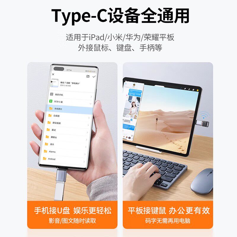 绿联otg转接头usb转typec转接线U盘转换器接口适用苹果16数据线iphone17/15华为手机平板电脑优盘车载连接tpc