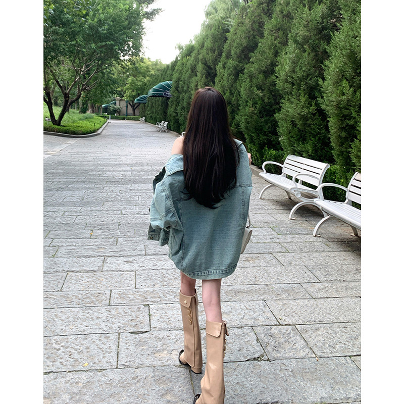 真皮~内增高粗跟骑士靴女秋冬西部靴高筒复古显瘦褶皱堆堆靴长靴