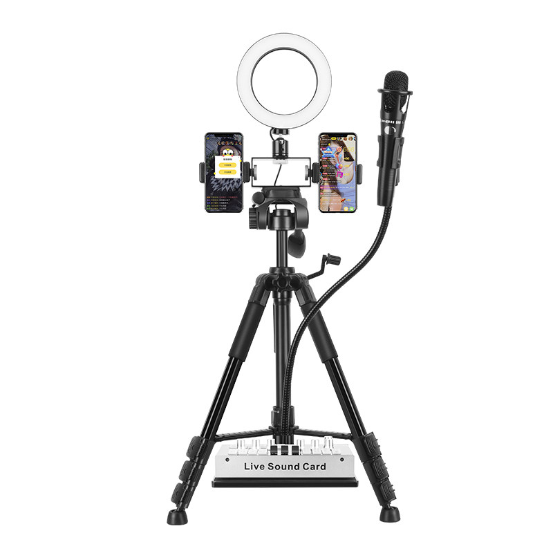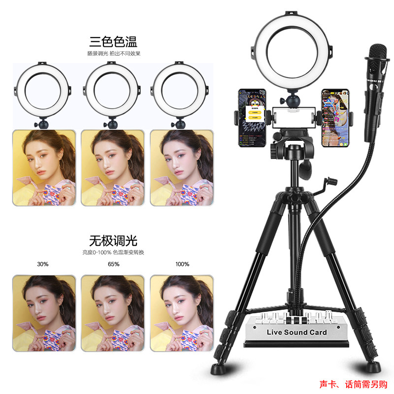 轻装时代手机直播拍照支架声卡美颜补光灯主播视频三脚架拍摄专用自拍万能通用桌面双机位落地式懒人支撑架