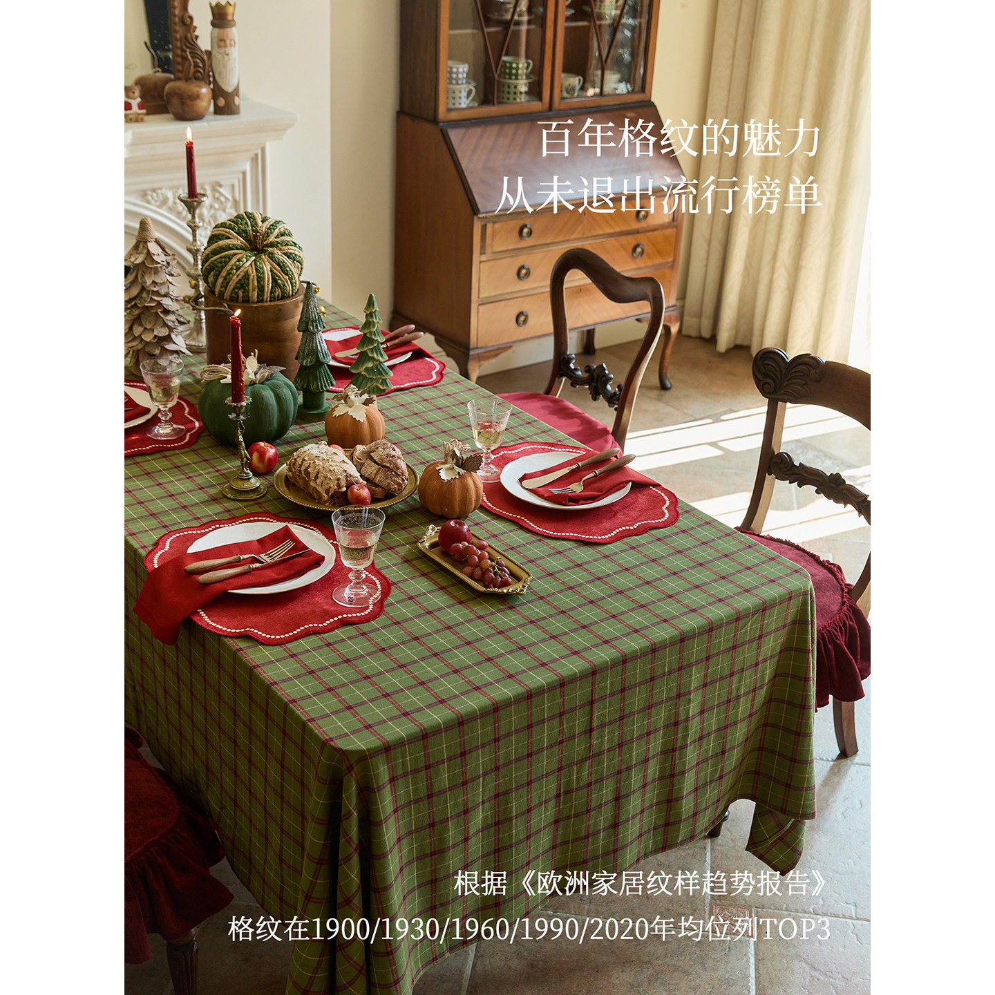 蜡笔派匹斯堡桌布轻奢复古格纹新款新年节日客厅茶几盖布餐桌盖布