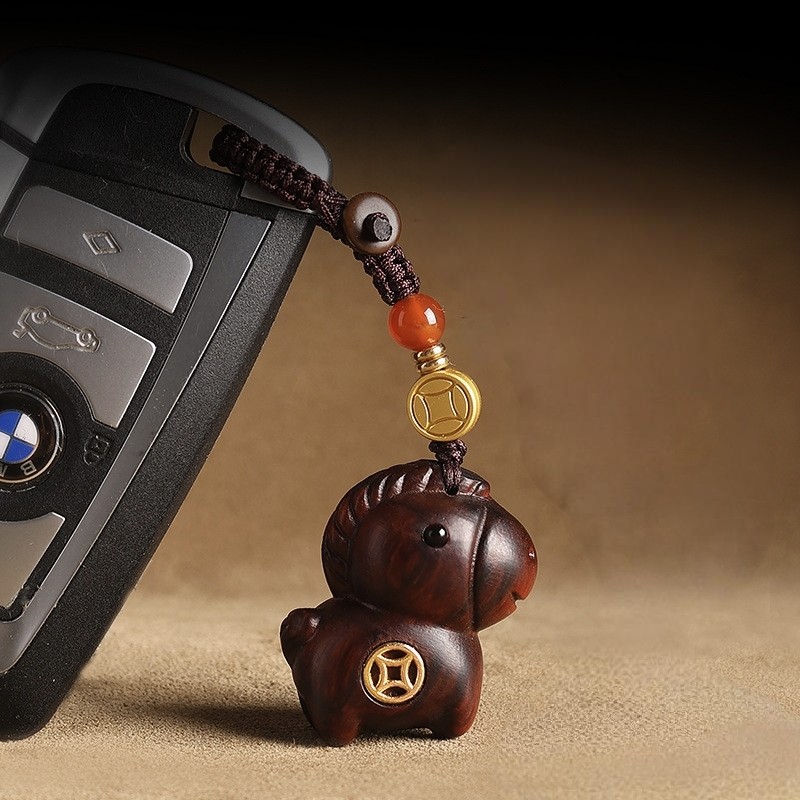 檀木马钥匙扣生肖小马手机挂件汽车钥匙挂饰包包吊坠钥匙链绳