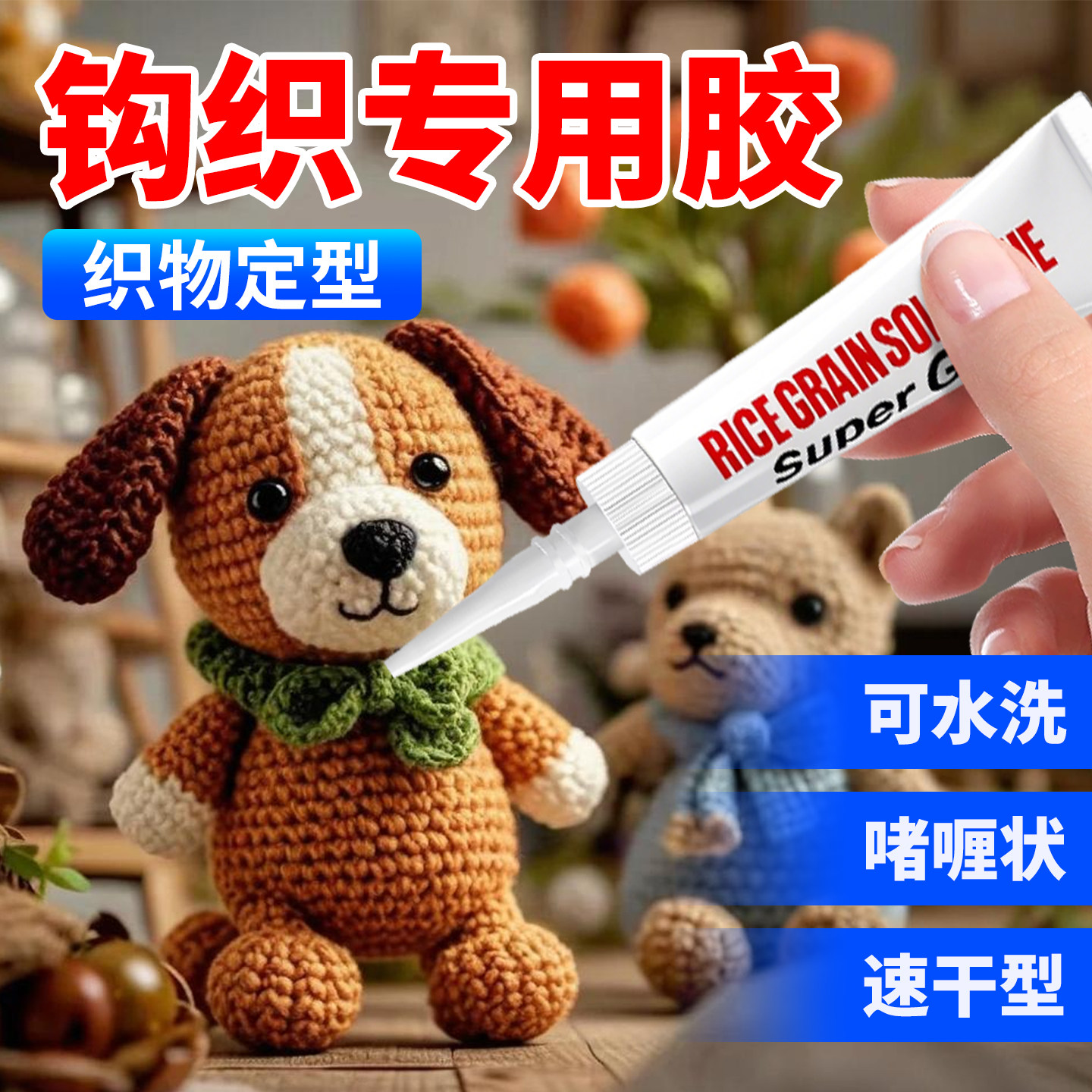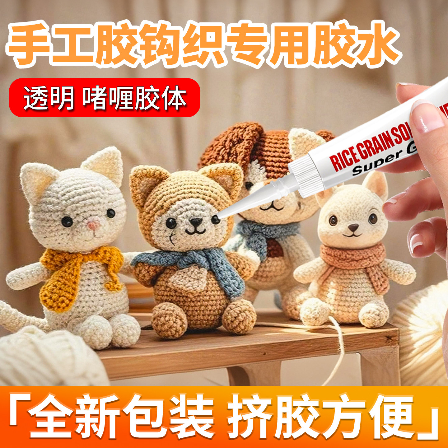 钩织胶水粘微钩拼豆织物布娃娃玩偶眼睛配件手捧花束平底材料包专用胶透明快干沾手工diy针织品毛线手工胶水
