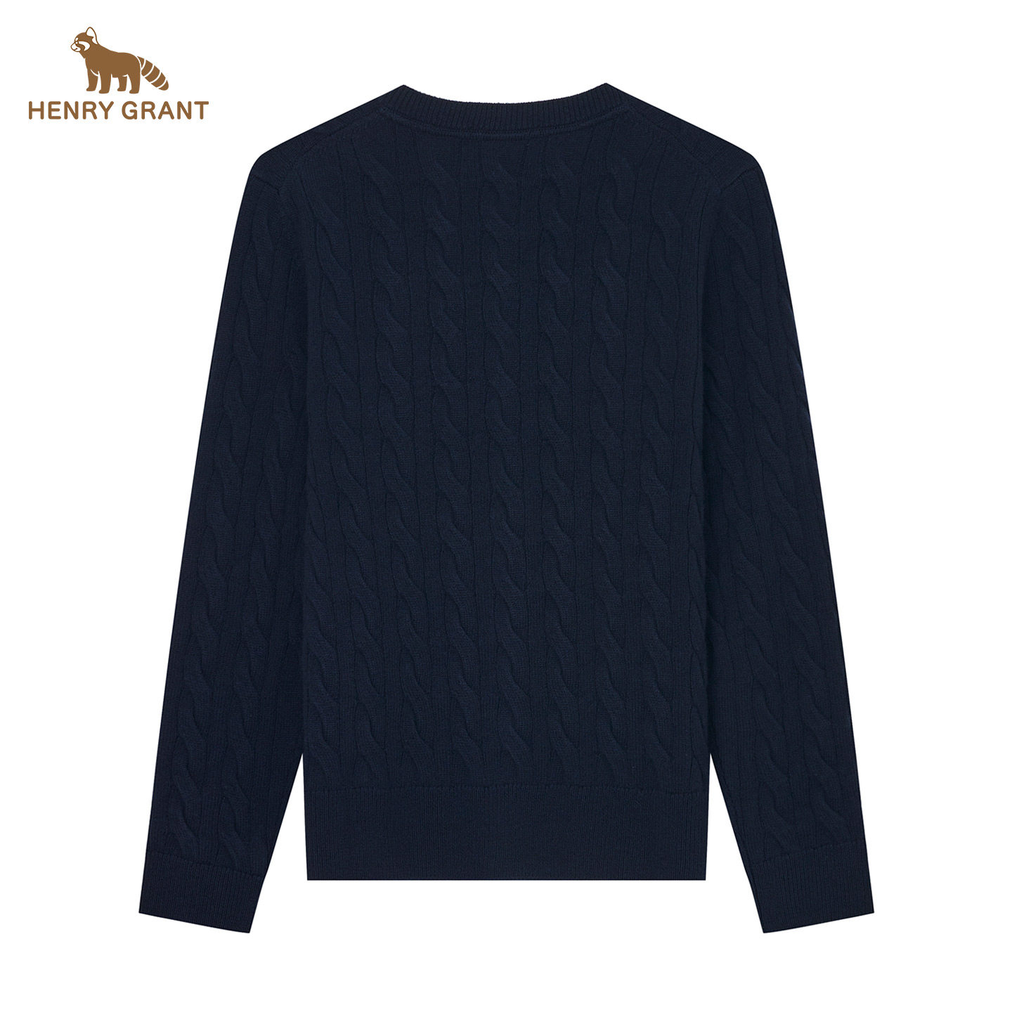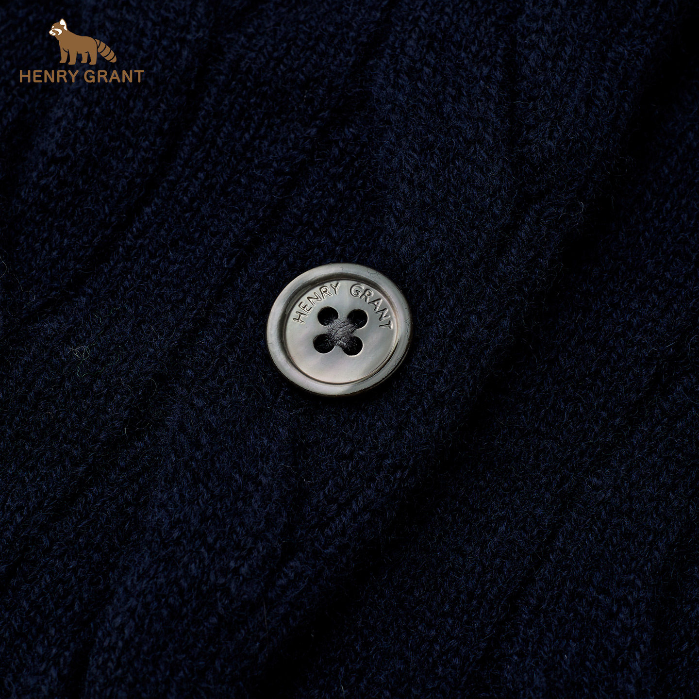 亨利格兰藏青色针织开衫女2025秋冬气质羊毛衫纯色圆领外搭上衣