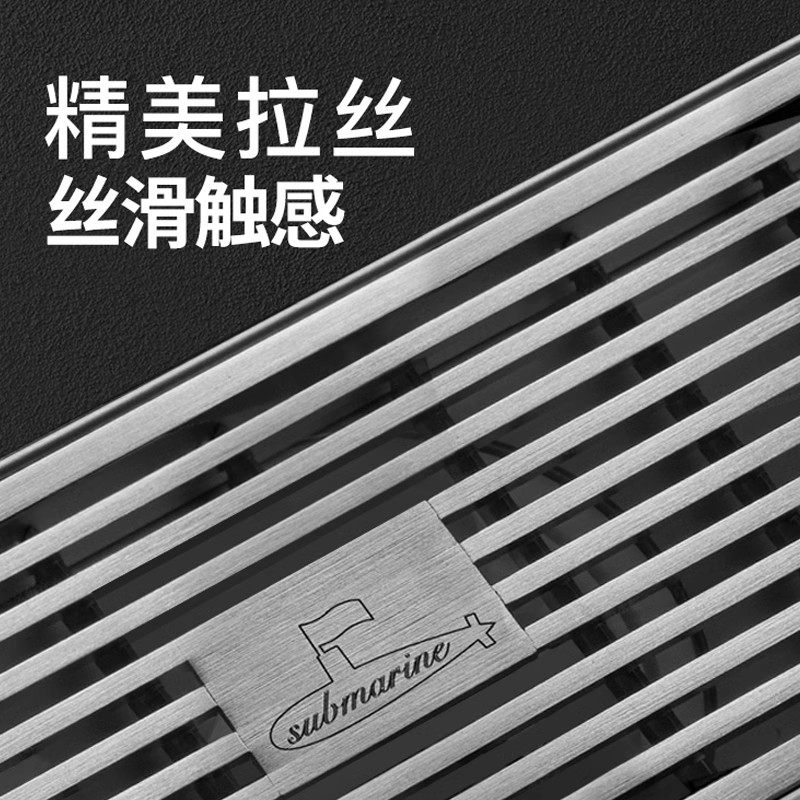潜水艇黑色大师地漏长方形 304不锈钢长条型防臭卫生间隐形淋浴房