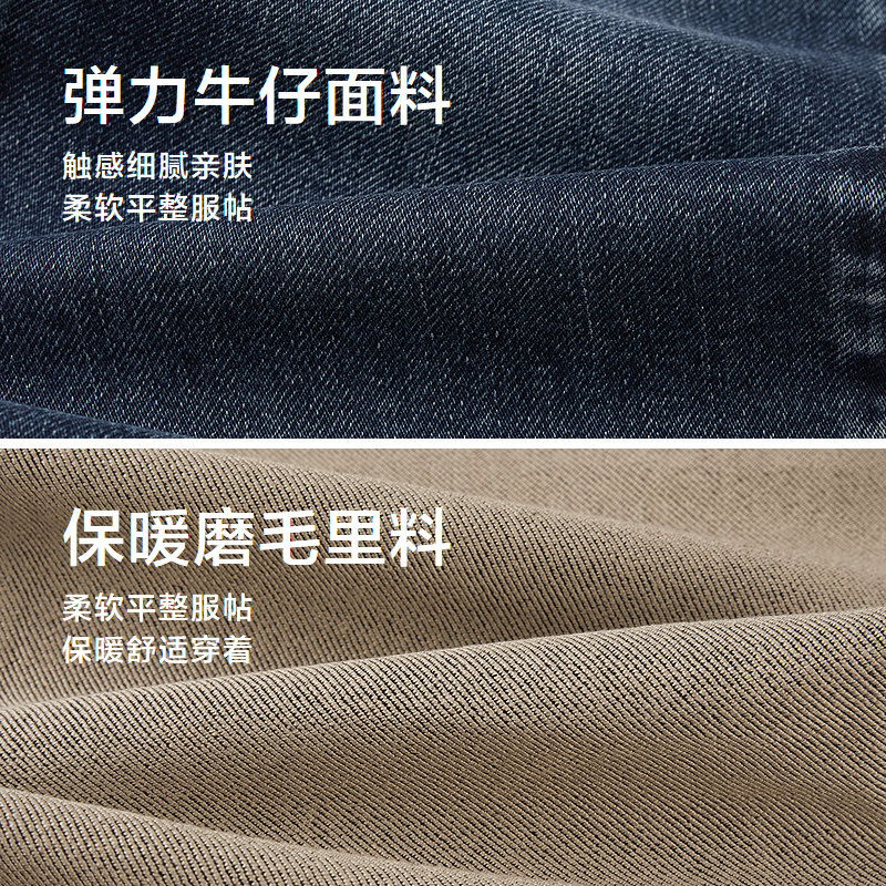 HLA/海澜之家三国演义猫须牛仔裤25秋冬新保暖磨毛弹力直筒裤子男