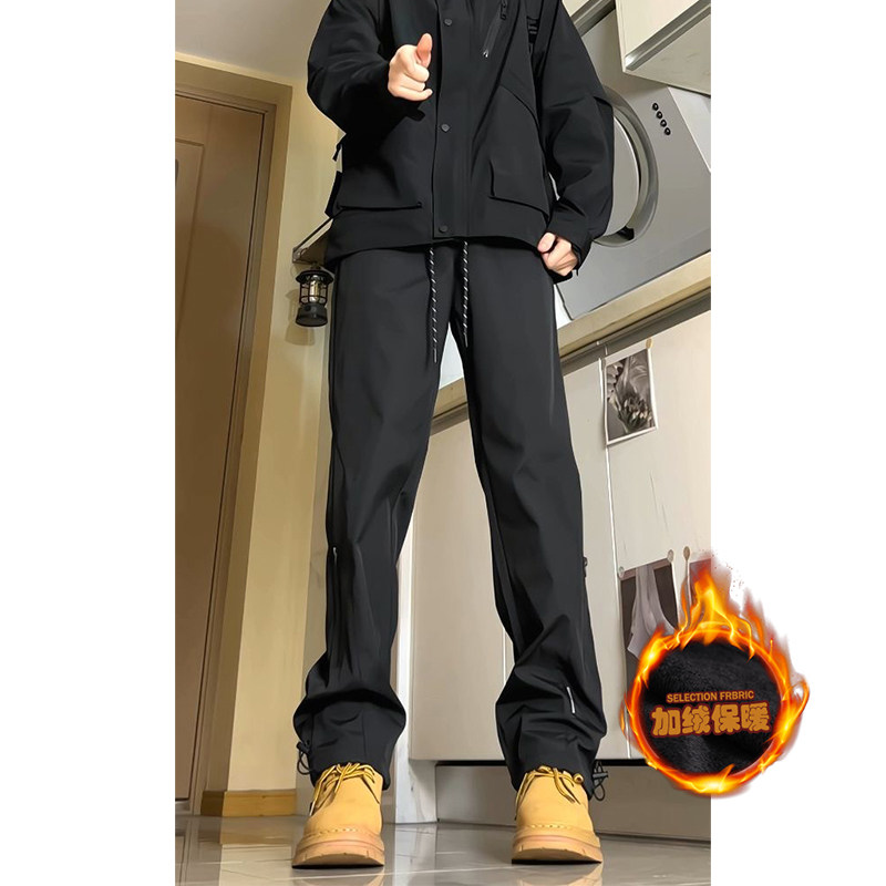 鸿星尔克裤子男冬季加厚防风直筒长裤男士软壳运动裤爸爸休闲男裤