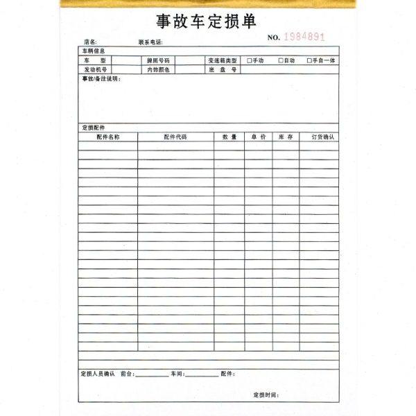 汽车修理厂事故车定损表二联4S店车辆维修定损配件明细表报价单据