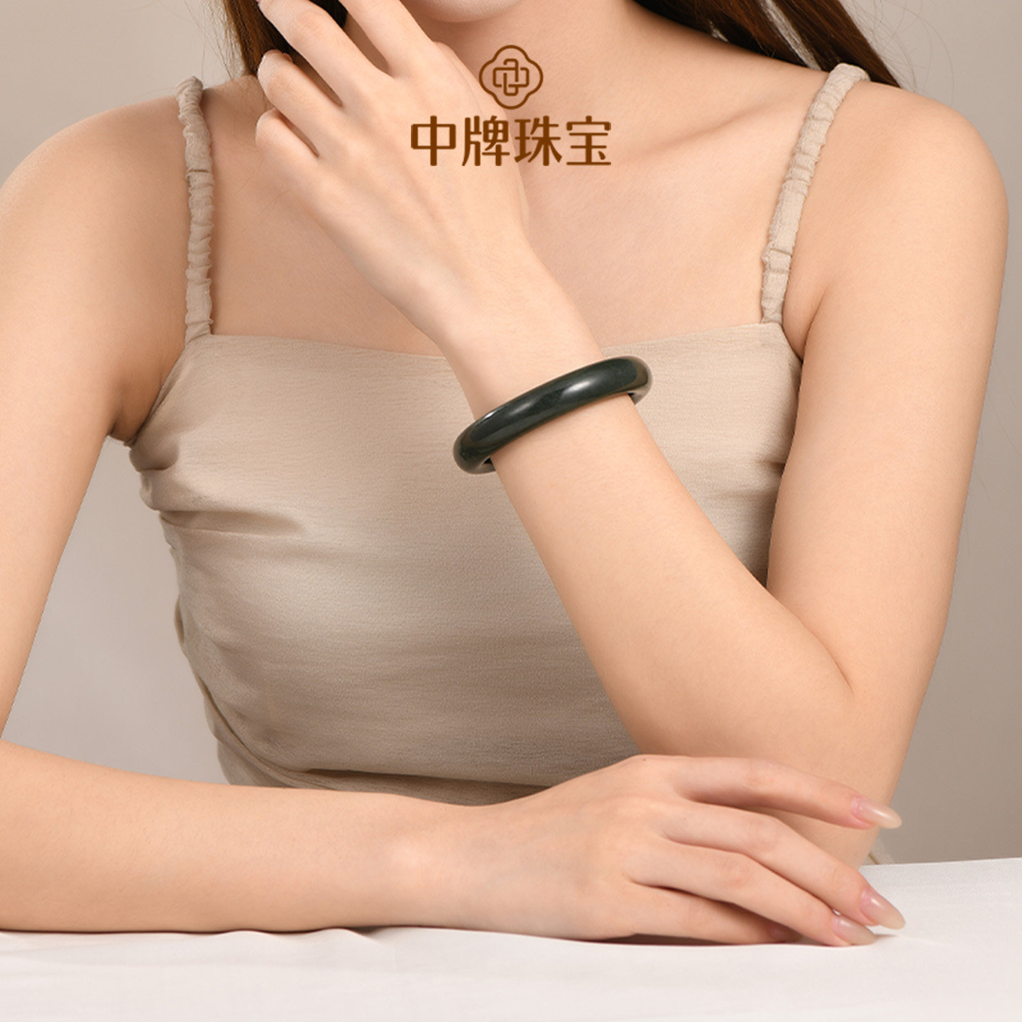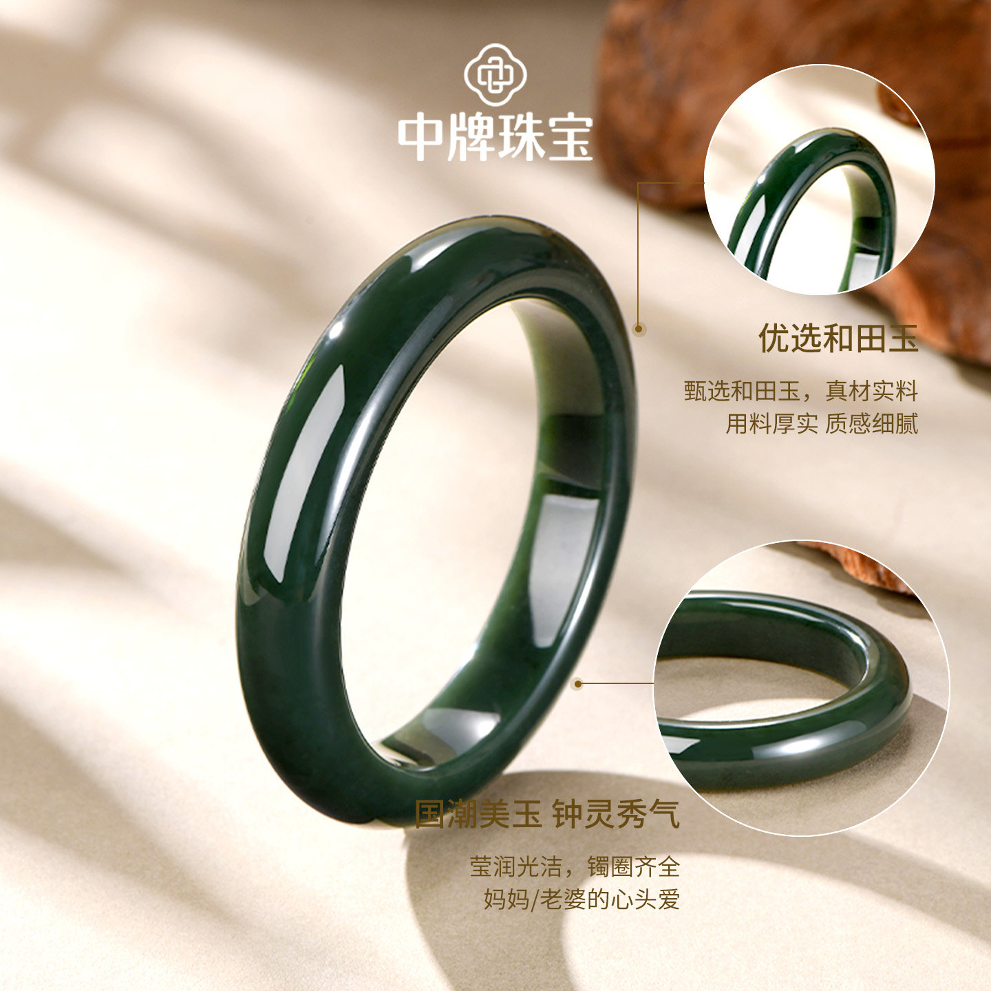 潮宏基倾玉足金翡翠和田玉檀木手链黄金手串一款两戴纪念礼物