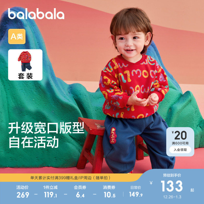 巴拉巴拉童装宝宝套装婴儿衣服2025新款运动儿童加绒两件套春秋潮