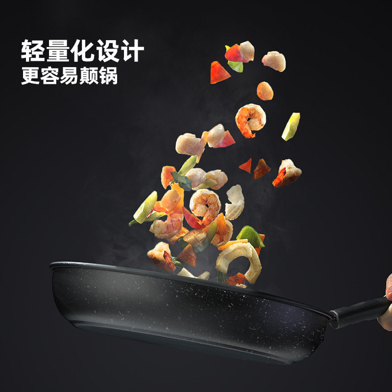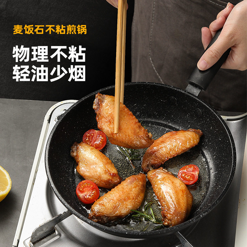 麦饭石不粘锅平底锅牛排煎锅家用多功能炒锅炒菜电磁炉燃气灶可用