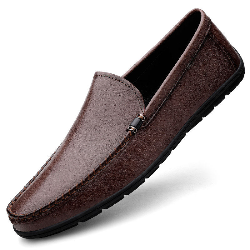 豆豆鞋男士春夏季潮流一脚蹬懒人皮鞋圆头真皮软底驾车鞋时尚男鞋