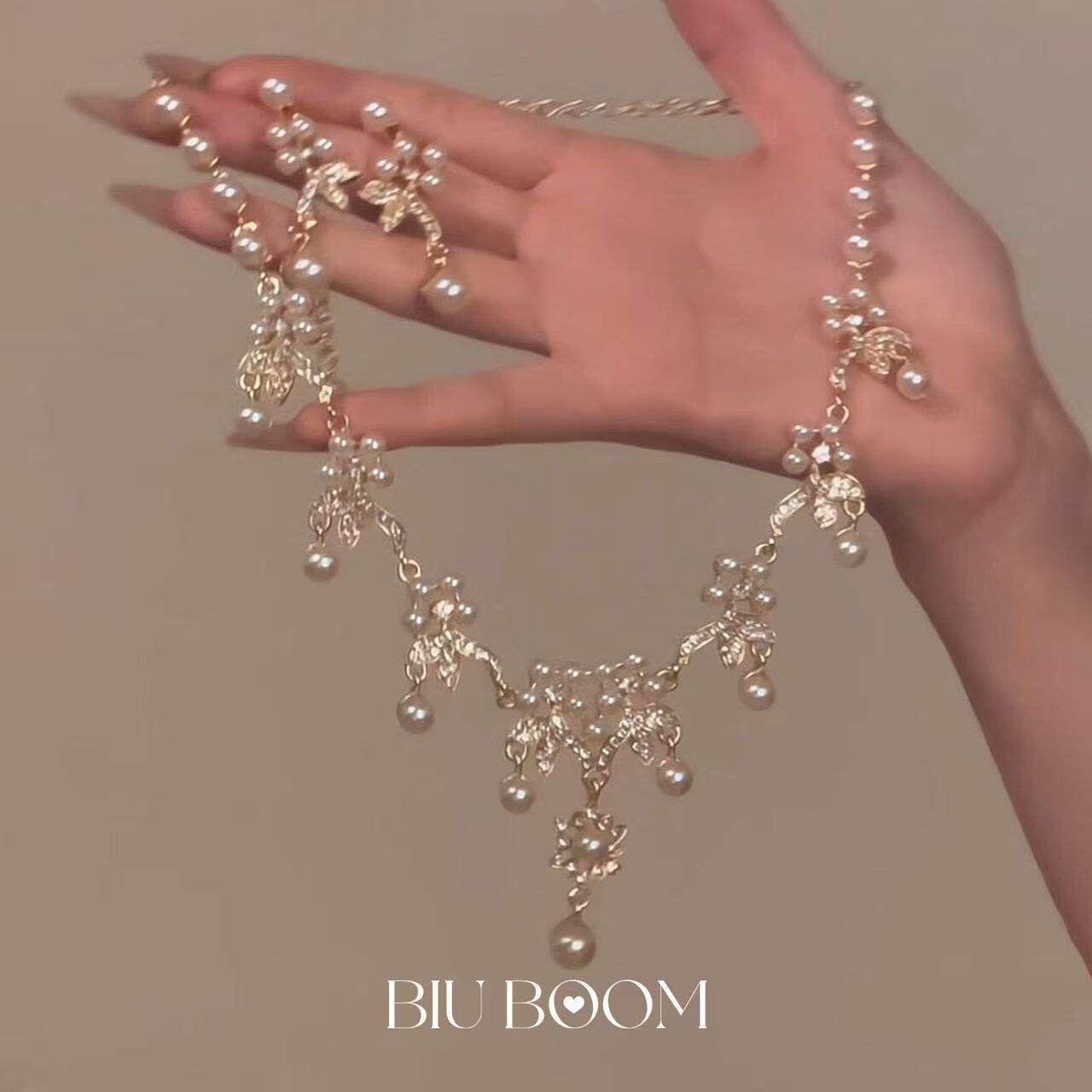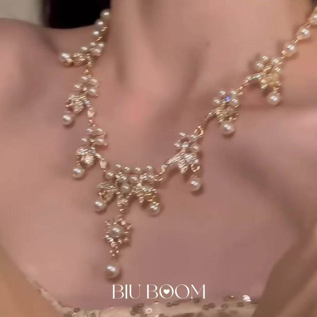 「biuboom」法式花朵仿珍珠项链气质精致轻奢新娘配饰品锁骨链
