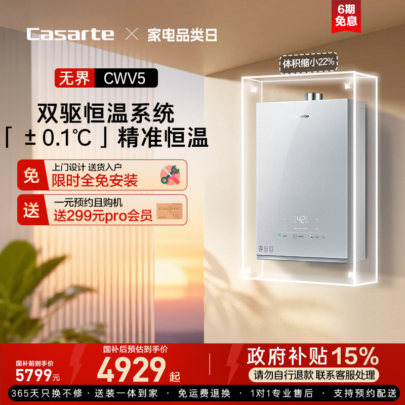 【卡萨帝无界】以旧换新补贴燃气热水器双驱水伺服恒温家用CWV5