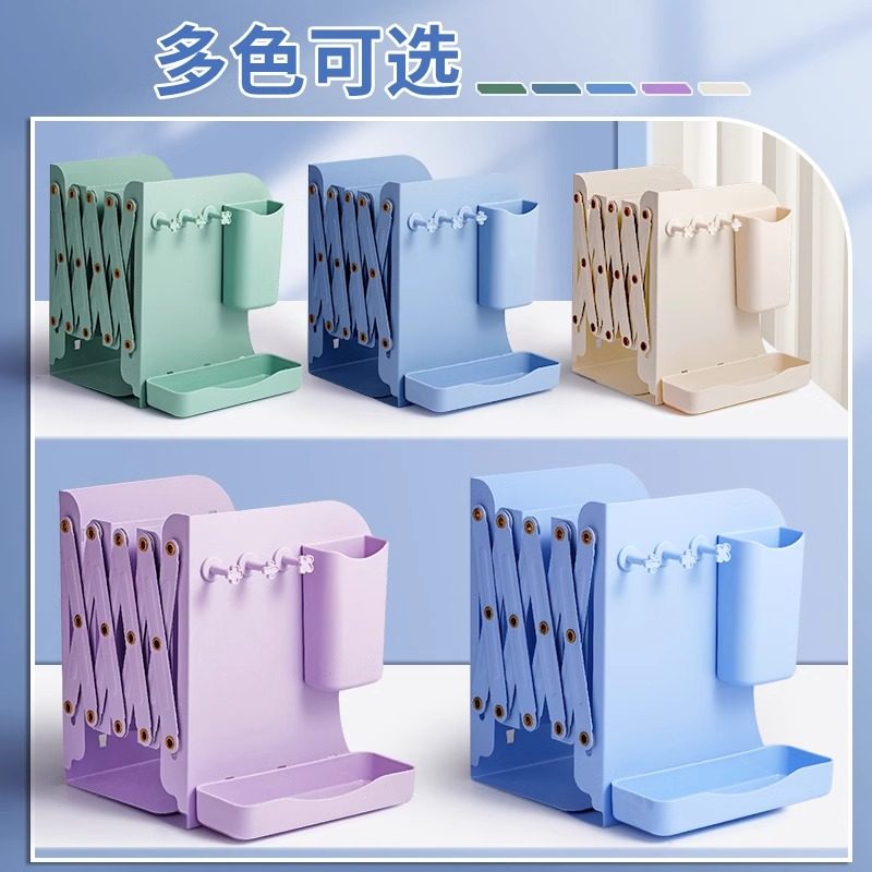 友德乐 书立架桌面可伸缩书立书本收纳置物架开学必备文具带笔筒书夹固定书本立架学生用桌上折叠立书架