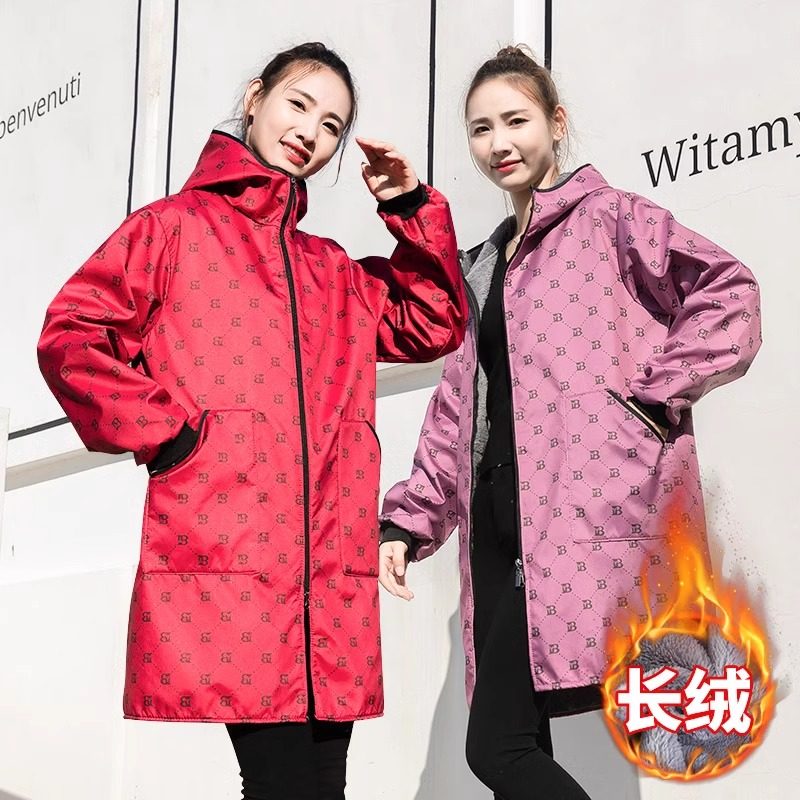 冬季加绒罩衣大人加厚长袖围裙防水韩版女时尚外套家用工作服定制