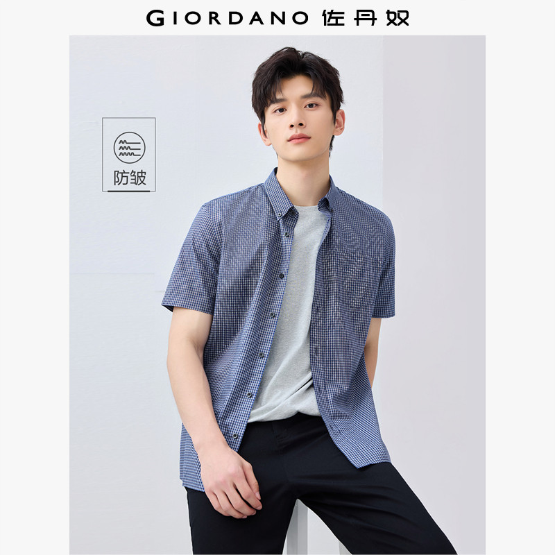 佐丹奴抗皱保型衬衫男装新款纯棉正装条纹格子衬衫男短袖01045460