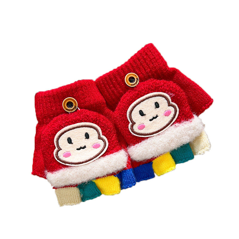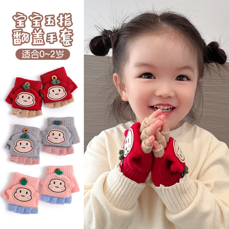 儿童手套秋冬天半指保暖宝宝女童可爱婴幼儿加厚小孩0-2岁小蘑菇