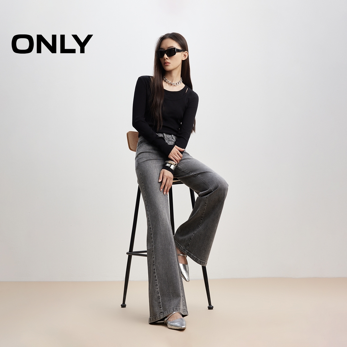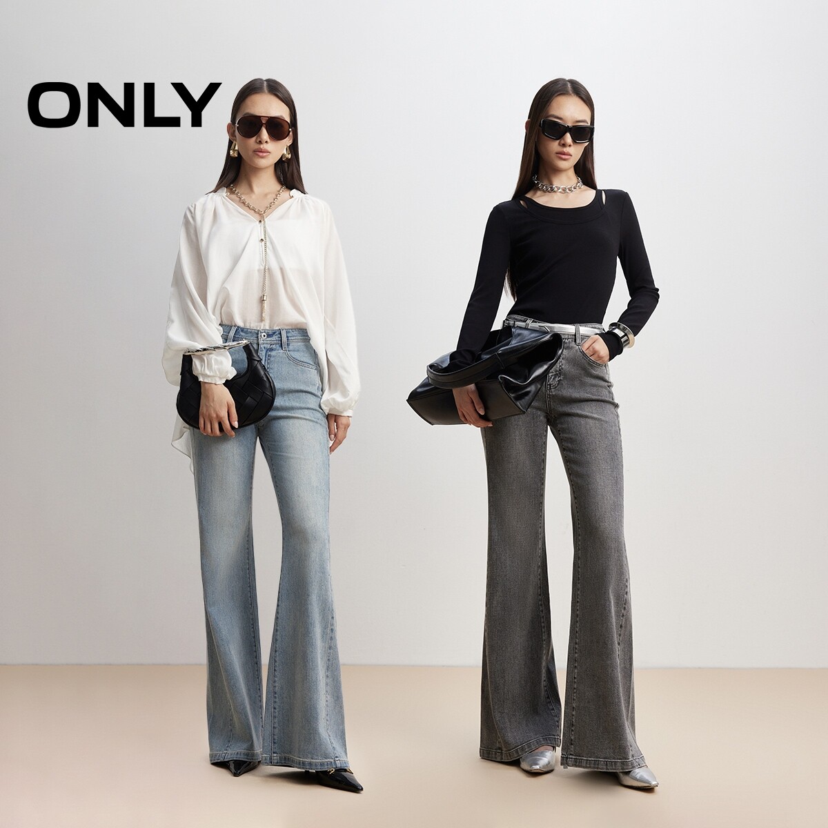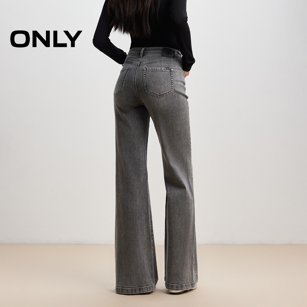 ONLY2026春季新款重工闪耀贴钻复古高腰显瘦长裤喇叭裤牛仔裤女