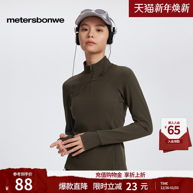 美特斯邦威T恤女秋冬新款运动拉链领长袖修身简约显瘦舒适柔软T恤