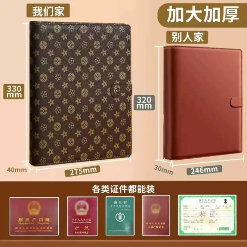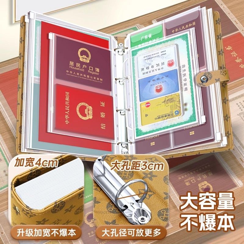 日本加厚皮面证件收纳包宝宝出生证家庭卡包册疫苗户口本带锁收纳