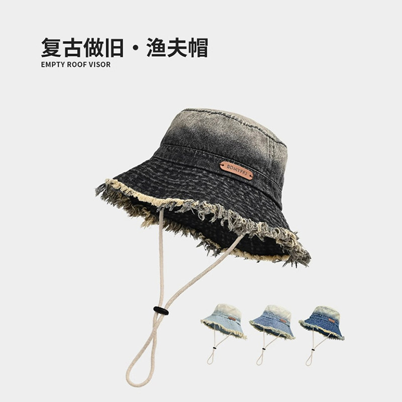 Classy key新加坡设计师联名款毛边牛仔帽显脸小盆帽夏季渔夫帽女