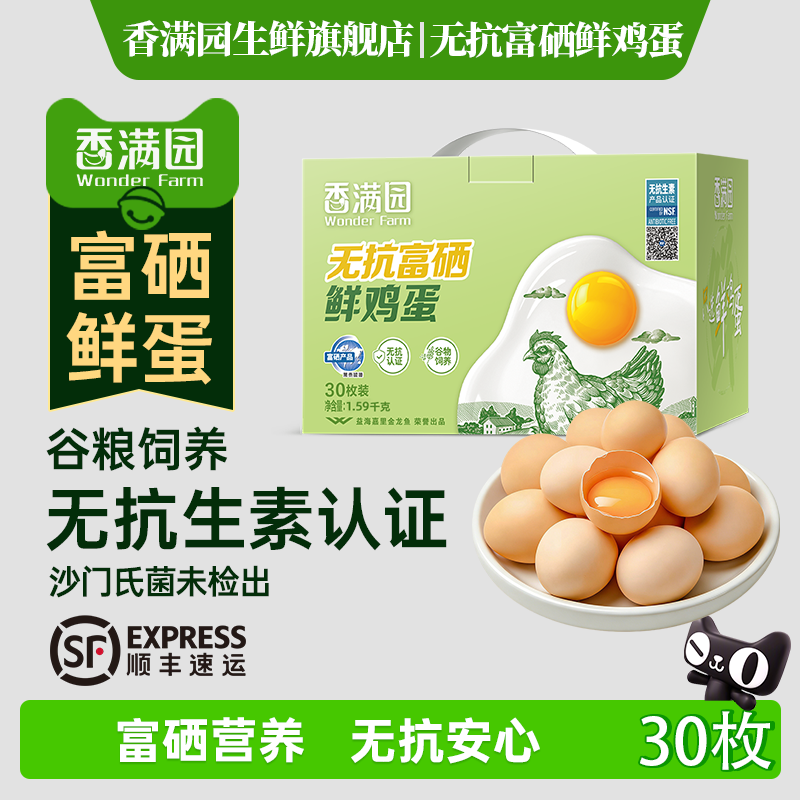 【顺丰包邮】香满园无抗富硒鲜鸡蛋30枚1.59kg礼盒装新鲜无菌蛋