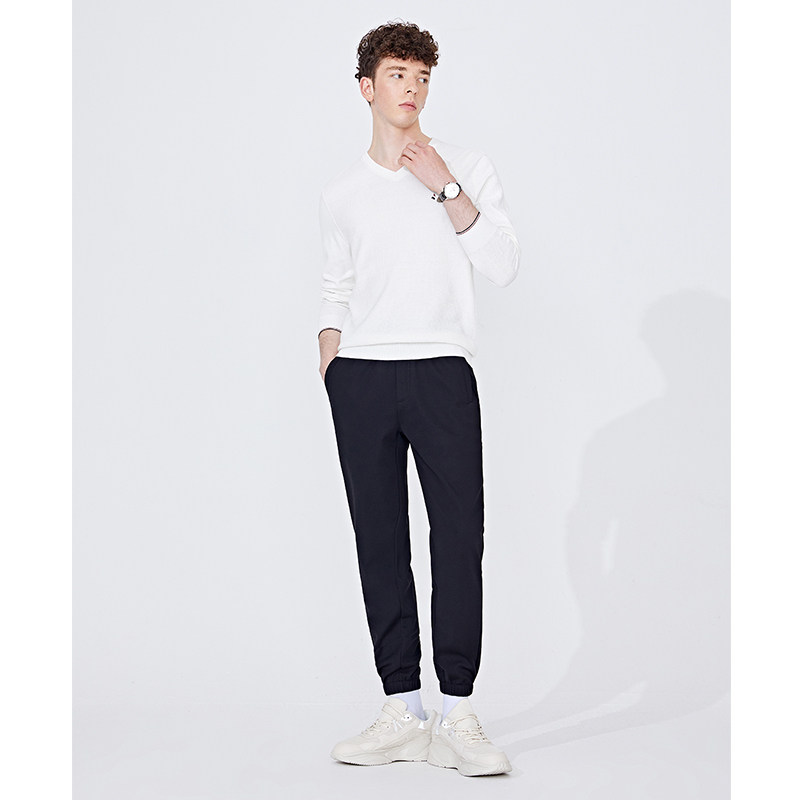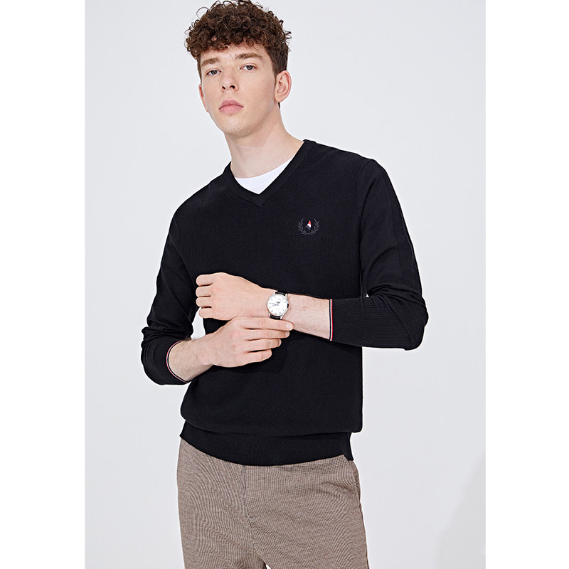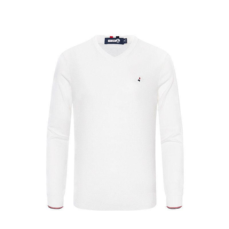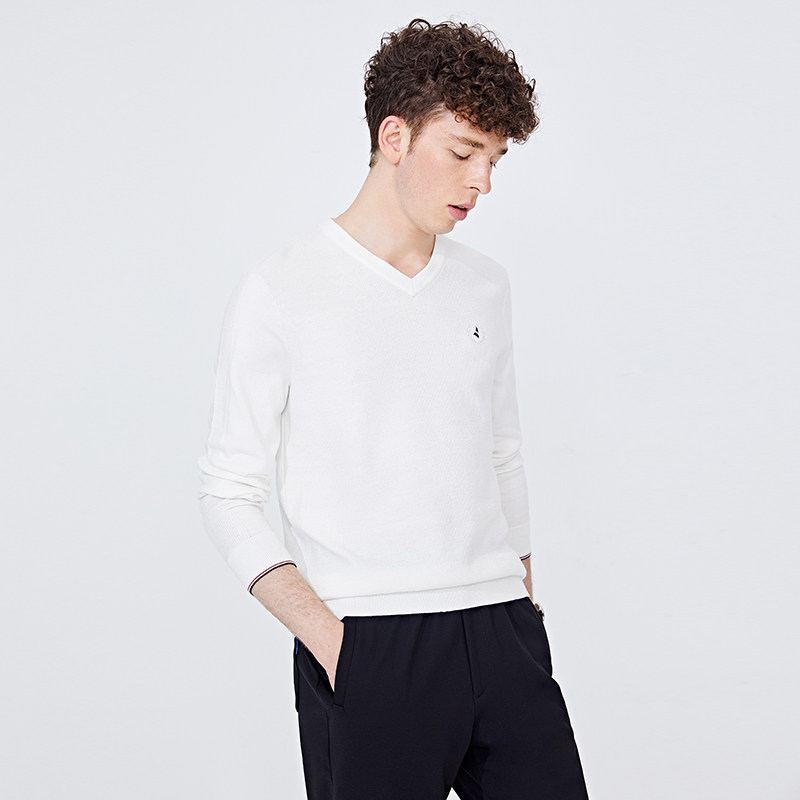 [羊绒]Navigare意大利小帆船秋季白色v领套头毛衣男士休闲针织衫